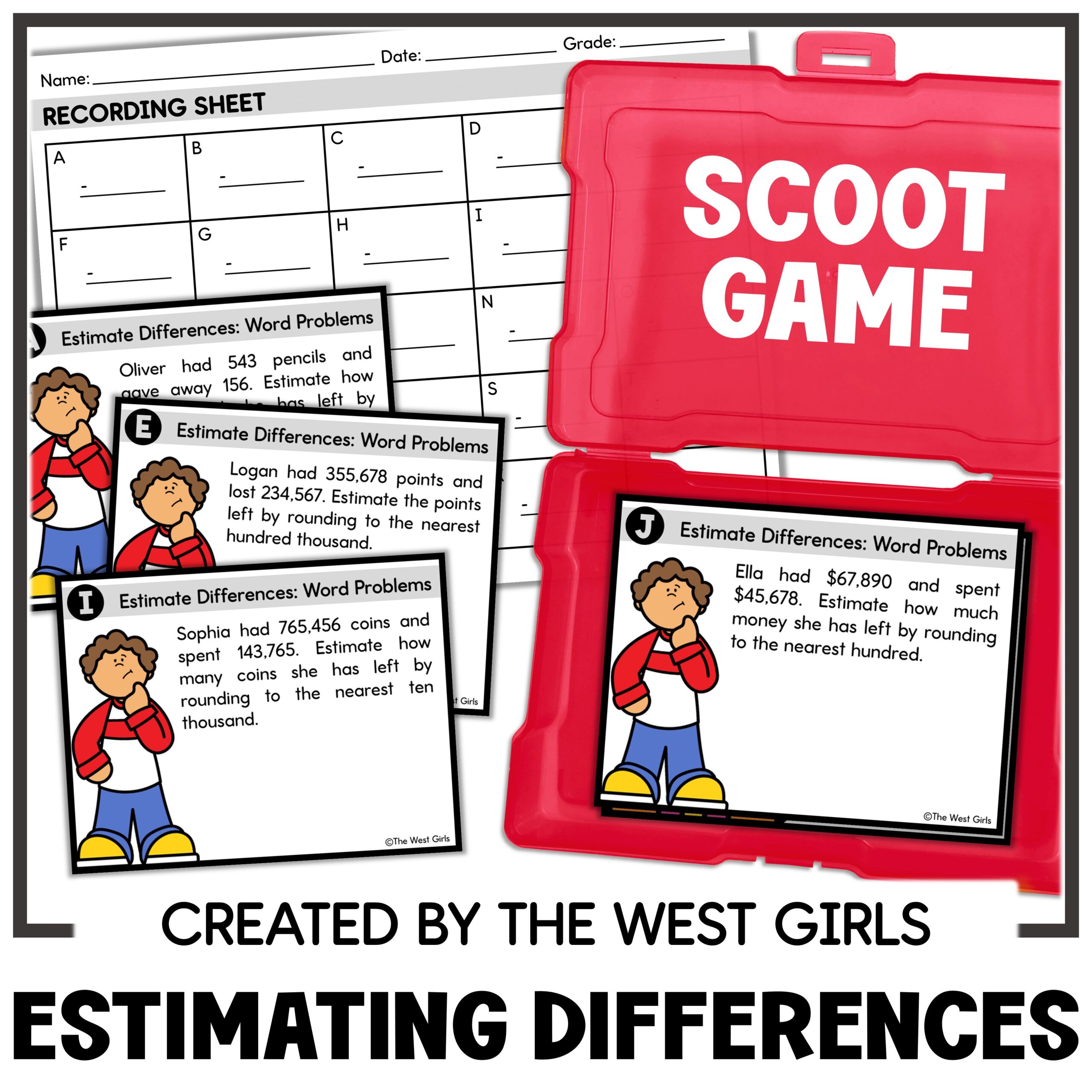 Help your students master rounding and estimation with this engaging resource! In ‘Estimating Differences,’ students will practice rounding numbers to the nearest hundreds, thousands, ten thousands, and hundred thousands, followed by subtracting the rounded numbers.
